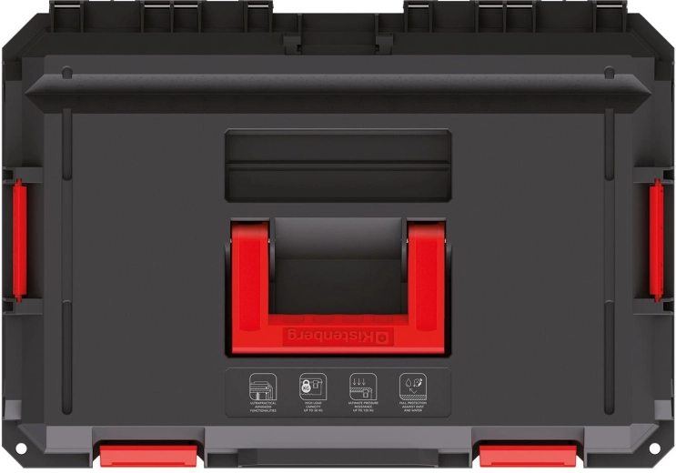 Sistemul modular cu conectori cu blocare permite conectarea sigură cu alte boxuri X-Block și crearea de seturi ordonate, după necesități. Modelele selectate de capace sunt dotate cu șine din aluminiu pentru transformarea genții într-o masă de lucru compactă și stabilă – ideală pentru tăieturi precise sau lucrări de montaj.