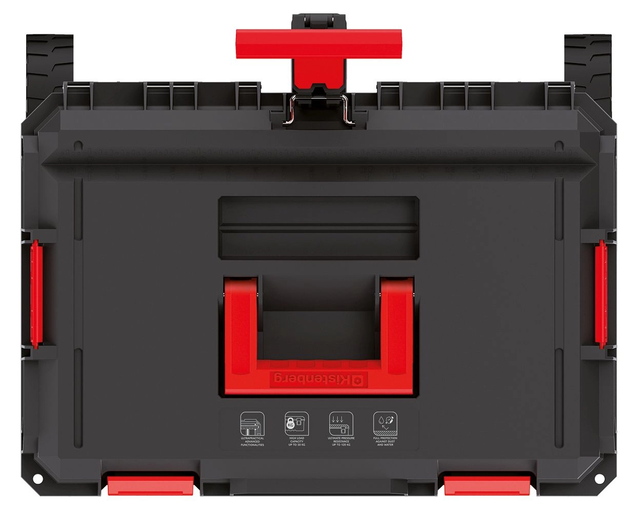 Plasticul masiv, colțurile ranforsate și clemele solide cu etanșare protejează conținutul împotriva șocurilor, prafului și apei.
