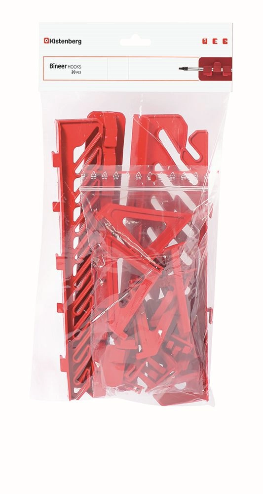 Setul practic de cârlige Kistenberg BINEER HOOKS vă ajută să organizați rapid și clar uneltele în atelier, garaj sau locuință. Pachetul include 20 de suporturi cu forme diferite, pe deplin compatibile cu panourile de perete din gamele BINEER și ORDERLINE. Plasticul rezistent, cu protecție împotriva radiațiilor UV și a intemperiilor, asigură o durată de viață lungă, în timp ce greutatea redusă și instalarea ușoară simplifică munca. Culoarea roșie puternică sporește claritatea și vizibilitatea uneltelor pe panou.