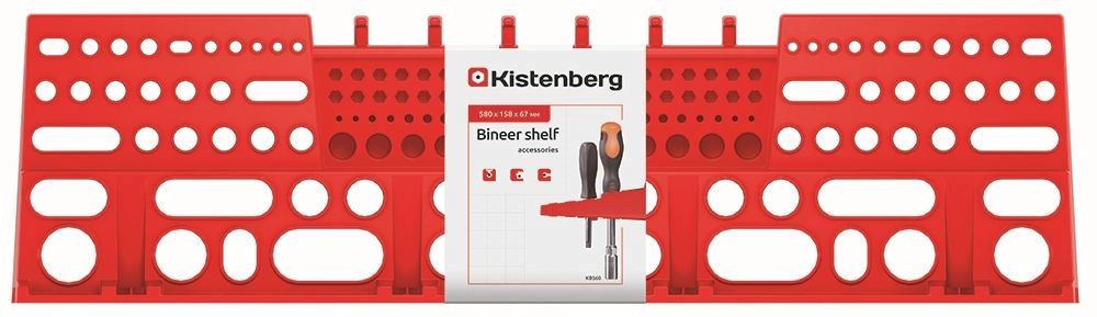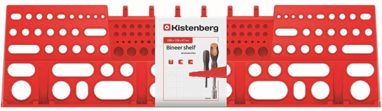 Suport practic pentru unelte pentru panouri BINEER cu dimensiunile 580 × 158 mm, în culoare roșie, care ajută la menținerea atelierului, garajului sau camerei tehnice perfect ordonate. Este fabricat din plastic rezistent, care asigură o durată lungă de viață, și oferă instalare rapidă și ușoară, precum și compatibilitate cu diferite tipuri de unelte manuale.