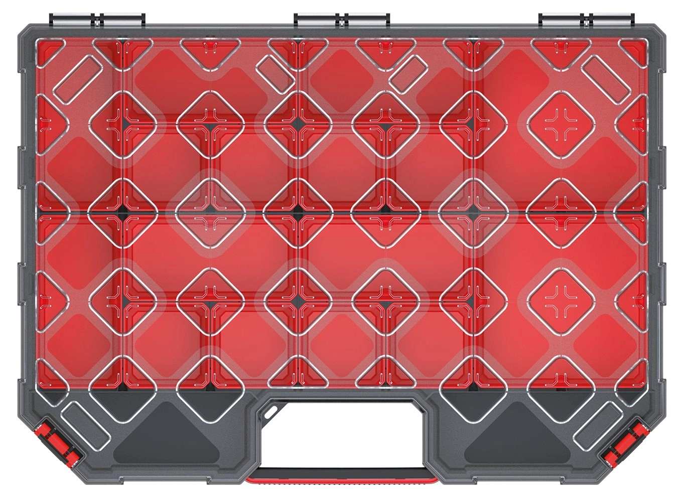 Organizator practic pentru atelier și gospodărie, oferă depozitare ordonată pentru elemente de fixare, accesorii și piese mici. Datorită capacului transparent din policarbonat vedeți mereu conținutul, construcția robustă asigură durabilitate, iar dimensiunile compacte permit transport și depozitare ușoare.
