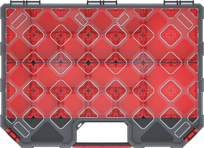 Organizator practic și rezistent pentru depozitarea ordonată a elementelor de fixare, uneltelor și pieselor mici. Capacul transparent din policarbonat asigură vizibilitate imediată a conținutului, iar construcția solidă și pereții înalți oferă depozitare sigură fără amestecare în timpul transportului.