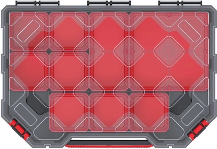 Organizatorul practic din plastic TAGER, cu dimensiunile 284 × 195 × 60 mm, este ideal pentru depozitarea ordonată a pieselor mici, șuruburilor sau materialelor pentru activități creative. Dispune de un capac transparent din polipropilenă (PP), datorită căruia aveți mereu o vedere rapidă asupra conținutului, iar totul rămâne în siguranță la locul său.