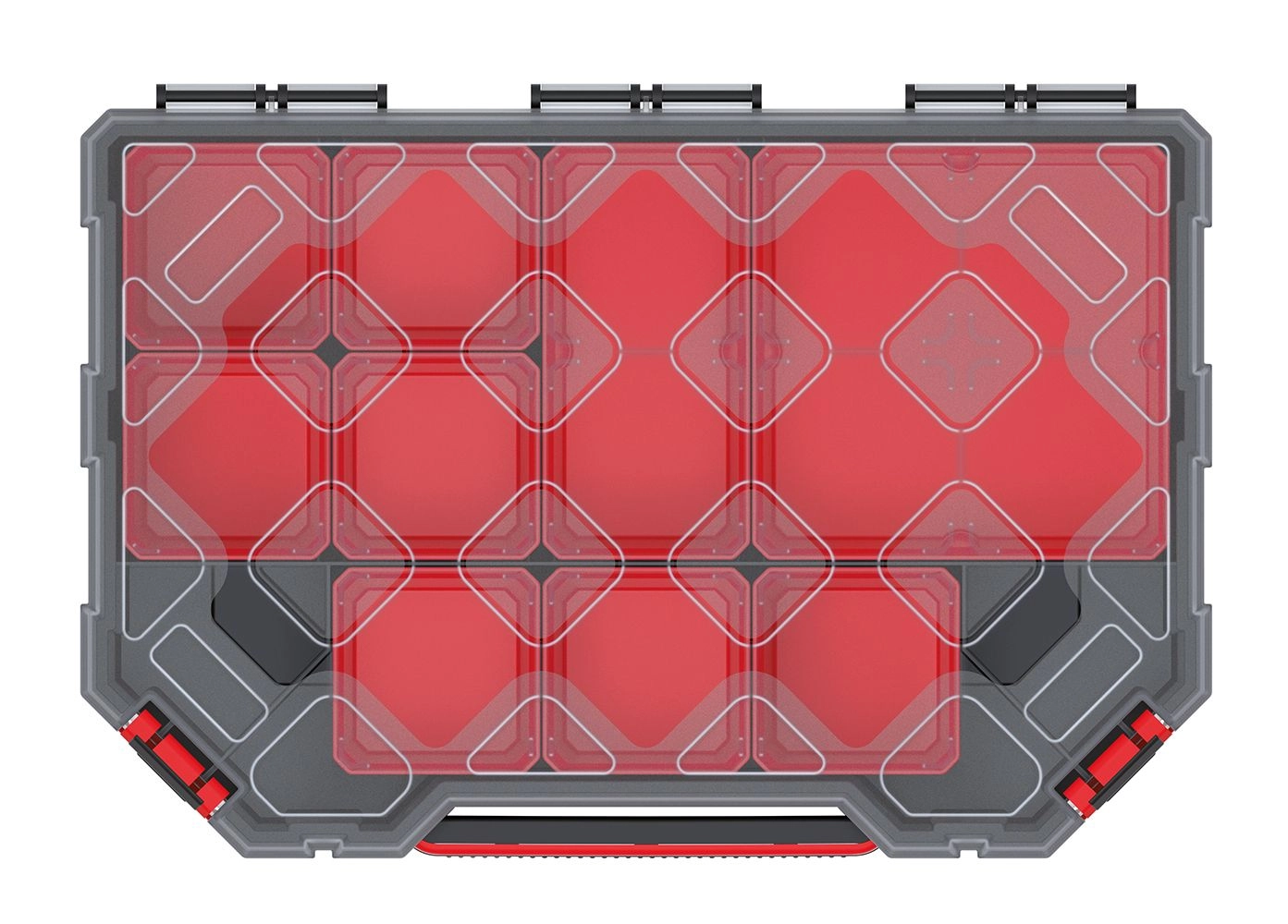 Păstrați ordinea în atelier, locuință și birou cu organizatorul ușor și rezistent TAGER. Capacul transparent din PP permite o verificare vizuală rapidă, protejează conținutul împotriva prafului și asigură o închidere fiabilă. Datorită dimensiunilor compacte, încape cu ușurință în sertare și genți.