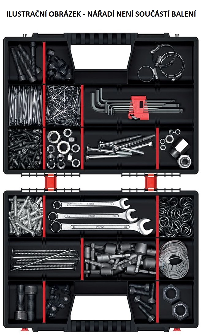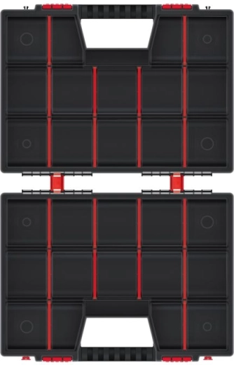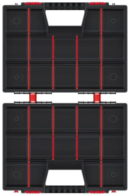 Spațiul interior poate fi ușor personalizat cu ajutorul separatorilor detașabili – creați exact compartimentele de care aveți nevoie. Plasticul robust, închiderile duble și capacele orientate unul către celălalt mențin totul în siguranță la locul său chiar și în timpul transportului.