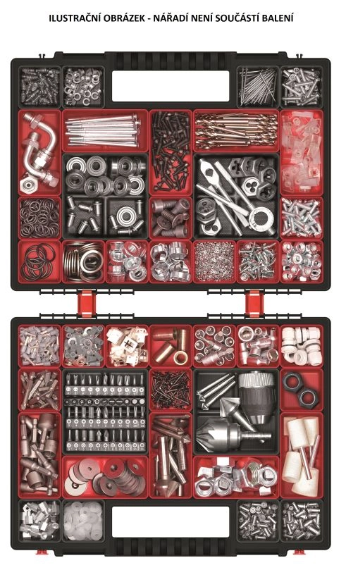 Capacul transparent din polipropilenă rezistentă economisește timp – verificați conținutul dintr-o privire. Închiderile solide previn deschiderea nedorită în timpul transportului, iar mânerul ergonomic crește confortul la lucru în atelier, pe șantier sau în garaj. Dimensiunile compacte facilitează depozitarea pe raft, în dulap sau în vehiculul de service.