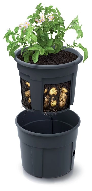 Descoperiți o modalitate simplă de a cultiva cartofi proaspeți fără grădină. Ghiveciul Potato Grower, cu diametrul de 29,5 cm și volumul de 12 l, oferă mediul ideal pentru formarea și creșterea tuberculilor. Sistemul în două piese – învelișul exterior și inserția interioară detașabilă – vă permite să urmăriți ușor dezvoltarea și să recoltați comod fără a deranja întreaga plantă.