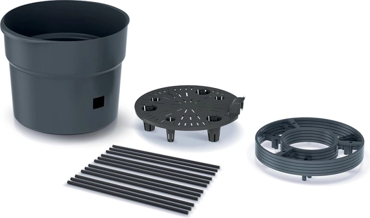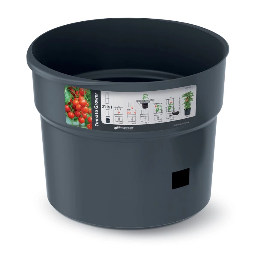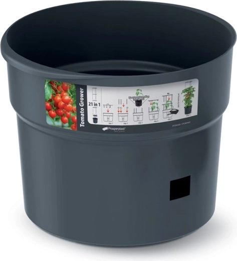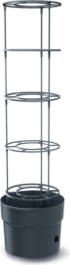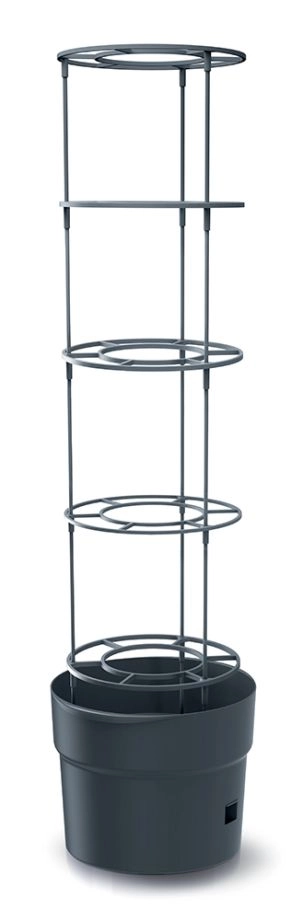Valorificați fiecare centimetru de spațiu și oferiți plantelor condiții ideale. Acest ghiveci de 18 litri cu suport integrat oferă roșiilor și altor culturi cățărătoare stabilitate, drenaj optim și suficient spațiu pentru rădăcini. Plasticul durabil, de culoare antracit, rezistă la intemperii și necesită întreținere minimă.