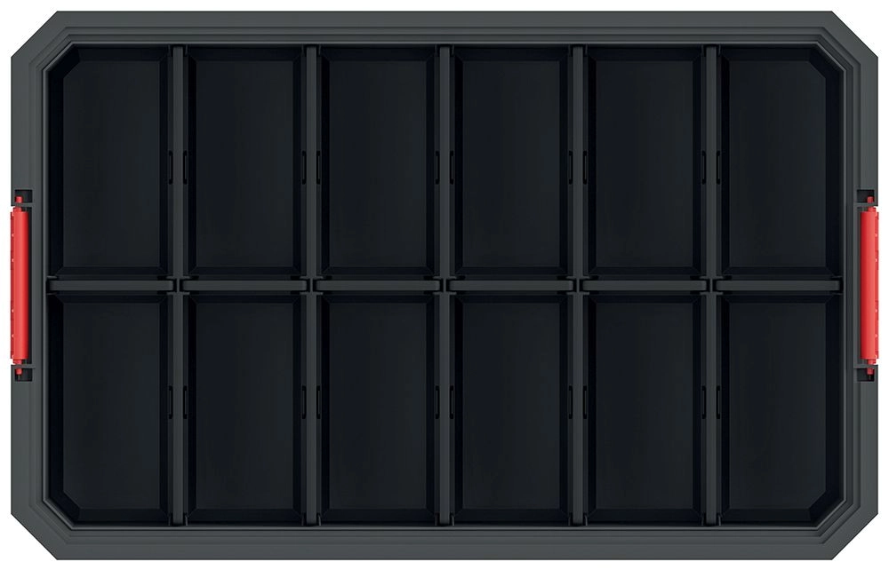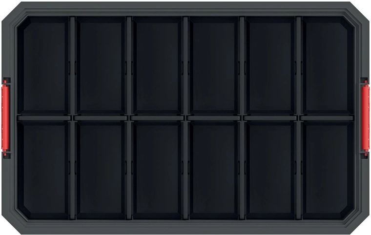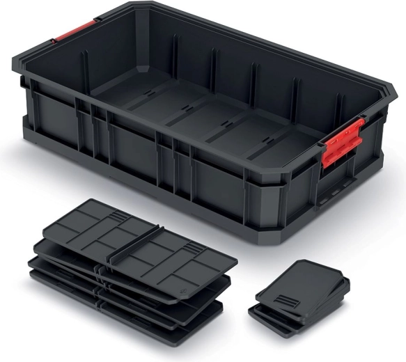 Cutie modulară de transport practică, cu despărțitoare detașabile pentru organizarea clară a uneltelor și a componentelor mici. Oferă configurare internă flexibilă, material plastic rezistent și dimensiuni compacte pentru manipulare ușoară. Finisajul negru asigură un aspect elegant, iar posibilitatea de conectare modulară cu alte cutii extinde capacitatea și claritatea organizării.