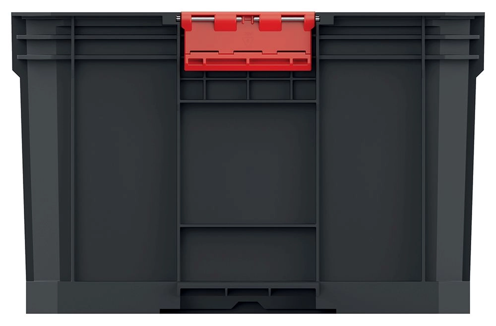 Pereții întăriți și zăvoarele roșii rezistente mențin conținutul în siguranță chiar și în timpul transportului frecvent. Ideală pentru unelte și materiale în condiții de lucru solicitante.