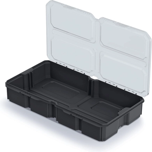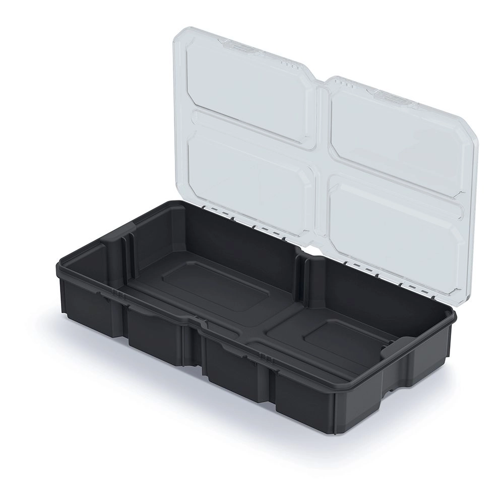 Organizatorul practic și rezistent Prosperplast MSX Box ajută la menținerea ordinii în atelier, garaj și biroul de acasă. Datorită dimensiunilor compacte 28,5 × 15,8 × 5,7 cm și construcției ușoare, dar robuste, din plastic, este ideal pentru depozitarea șuruburilor, cuielor, piulițelor și altor unelte mici. Capacul negru protejează conținutul împotriva prafului și murdăriei, iar trei separatoare detașabile permit adaptarea spațiului interior exact nevoilor tale.