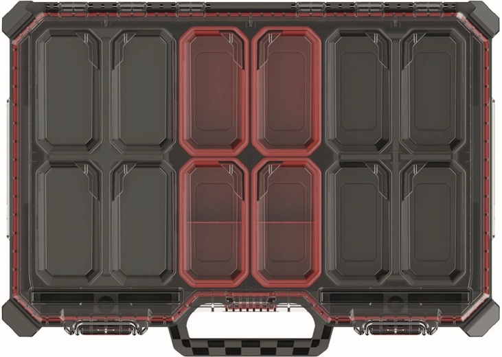 Păstrați ordinea în atelier, garaj și în timpul montajelor pe teren. Acest organizator jos, cu dimensiunile compacte de 54,3 × 39 × 7,7 cm, oferă compartimentare gândită pentru șuruburi, holșuruburi, dibluri și unelte mici. Capacul transparent din policarbonat permite o inspecție rapidă fără deschidere, iar carcasa robustă din plastic rezistă la șocuri și utilizare zilnică.