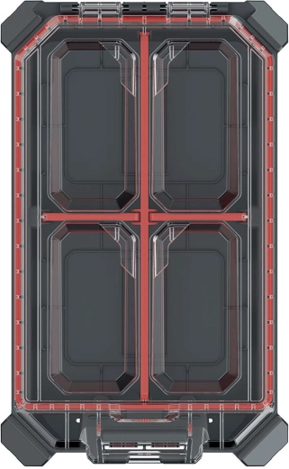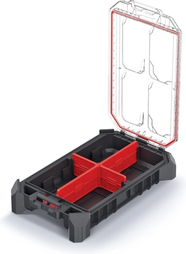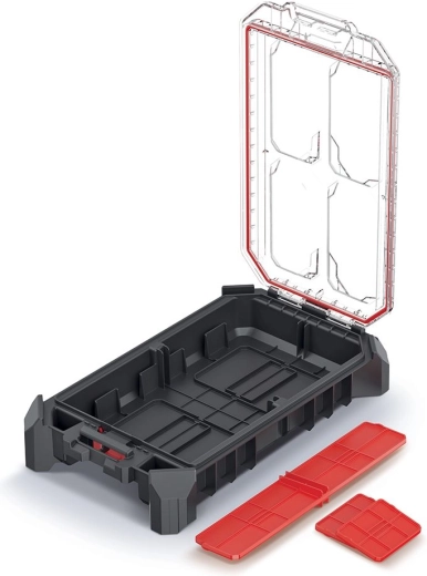 Organizatorul MSX cu dimensiunile 36,8 × 22,8 × 7,7 cm este alegerea ideală pentru meșteri, pasionați de bricolaj și tehnicieni de service care au nevoie să aibă întotdeauna la îndemână piesele mici și accesoriile. Capacului transparent din policarbonat rezistent permite verificarea imediată a conținutului fără deschidere, iar balamalele metalice solide împreună cu construcția ranforsată cresc durabilitatea chiar și în utilizare intensivă.
