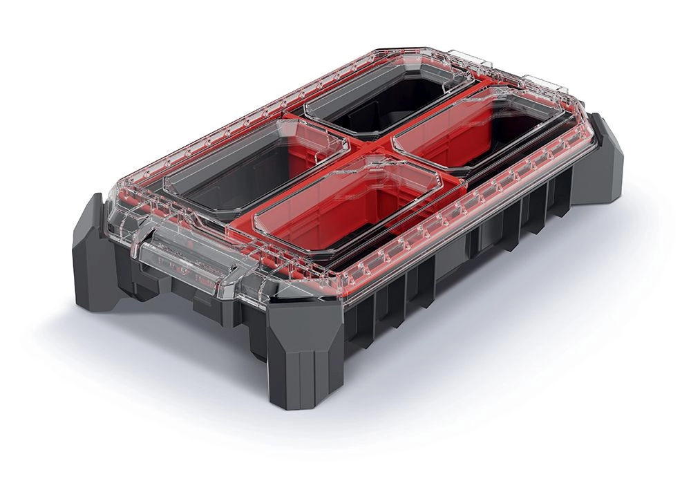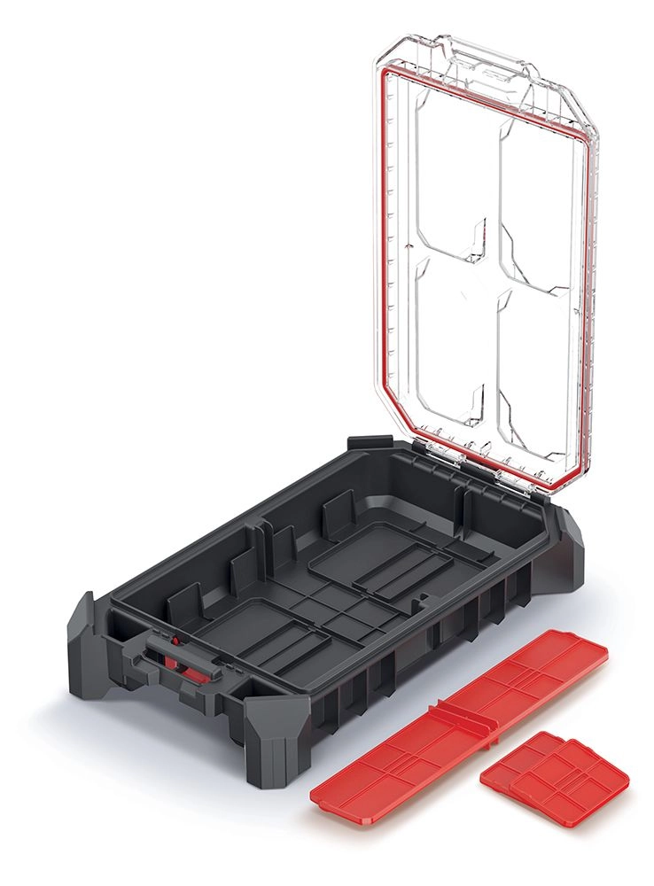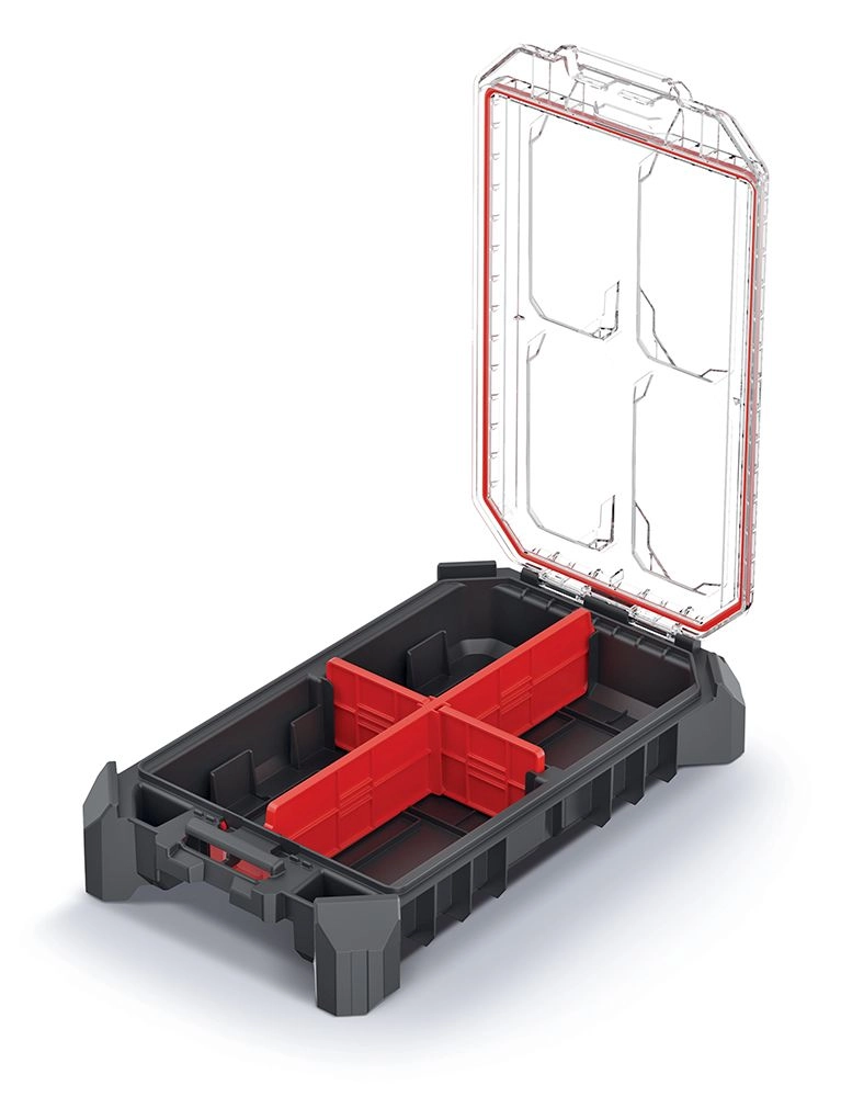 Vizibilitate imediată a conținutului fără deschidere. Policarbonatul clar este foarte rezistent la impact și protejează piesele mici și accesoriile în timpul transportului.