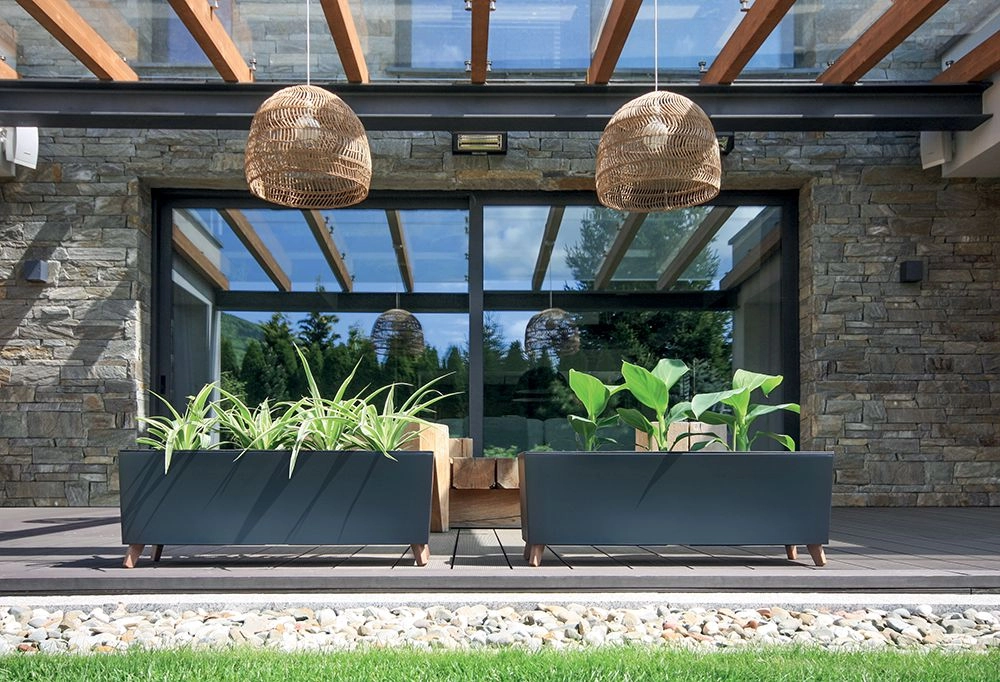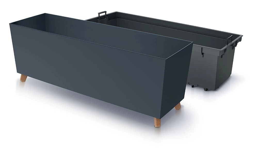 Jardinièră stilată, în culoare antracit, care combină liniile curate, stabilitatea și funcțiile practice. Picioarele înălțate, cu inspirație de lemn, susțin circulația aerului și stabilitatea, făcând recipientul potrivit pentru ierburi aromatice, flori și ierburi ornamentale. Materialul rezistent, cu protecție UV, își păstrează culoarea și aspectul pe tot parcursul anului.
