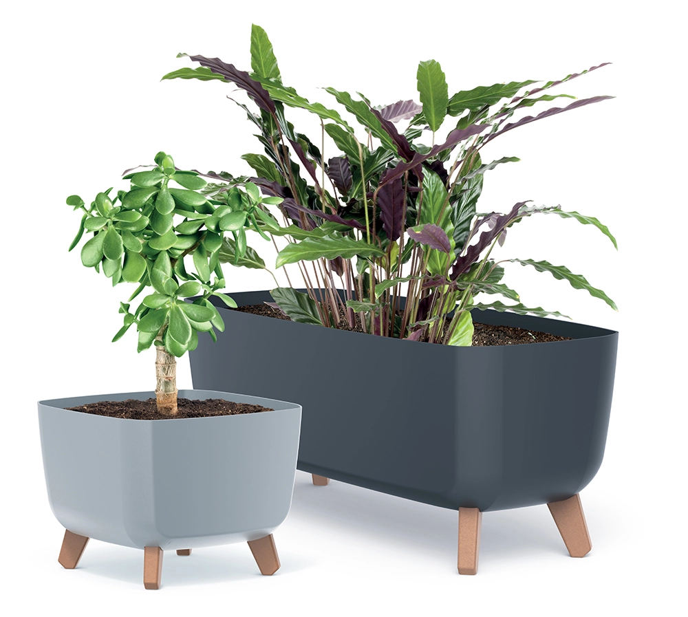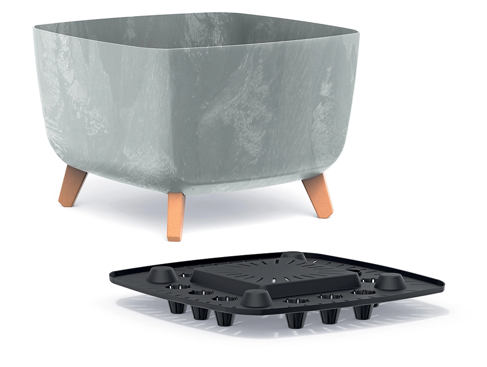 Ghiveciul stilat Gracia Square, cu dimensiunile 39 × 39 × 27 cm, îmbină designul modern, construcția ușoară și rezistentă și picioarele practice pentru o mai bună drenaj și circulație a aerului. Forma pătrată cu suprafață netedă și finisajul antracit se potrivește perfect atât la interior, cât și la exterior, iar decorul de lemn al picioarelor adaugă un accent natural. Ideal pentru flori, ierburi aromatice și plante verzi.
