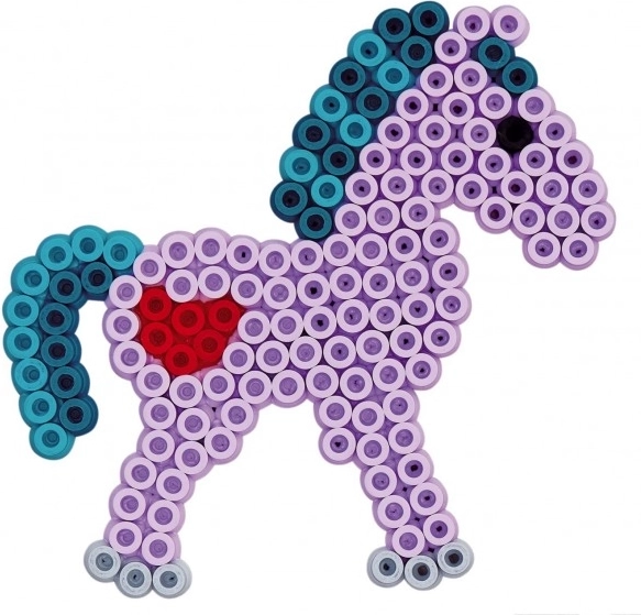 Setul oferă aprox. 3000 de mărgele, 4 plăci-suport cu forme și hârtie pentru călcat într-un săculeț practic. Start ideal pentru creații fără cumpărături suplimentare.
