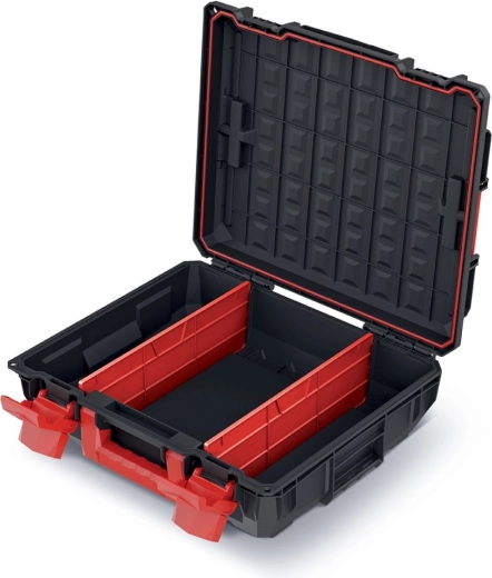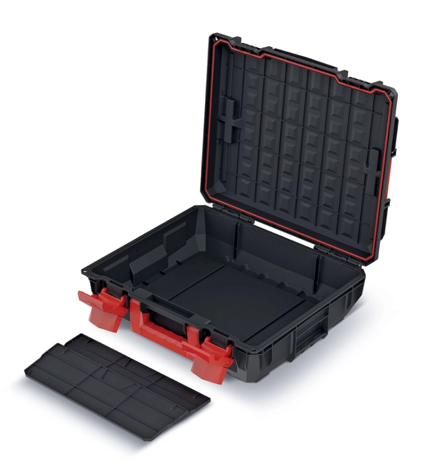 Geanta pentru scule C Block este alegerea ideală pentru profesioniști și pentru pasionații de bricolaj care au nevoie de o depozitare durabilă și fiabilă a uneltelor. Carcasa robustă din plastic, în combinație cu încuietori ABS solide și balamale metalice, asigură o protecție ridicată împotriva deteriorărilor mecanice și a factorilor de mediu nefavorabili.