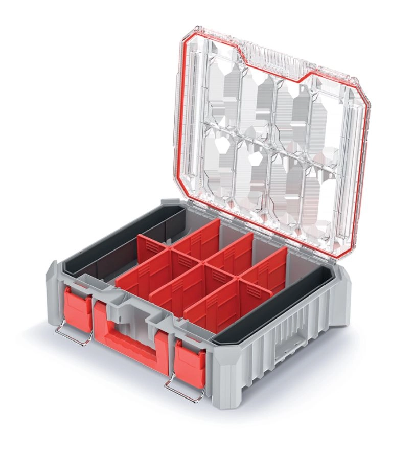 Organizator practic pentru unelte și elemente de fixare mici, cu interior modular pentru ordine maximă. Oferă compartimentare spațioasă, capac transparent din policarbonat pentru verificare rapidă a conținutului și etanșare solidă împotriva prafului și umidității. Datorită recipientelor și despărțitoarelor detașabile, poți adapta ușor interiorul nevoilor tale curente.