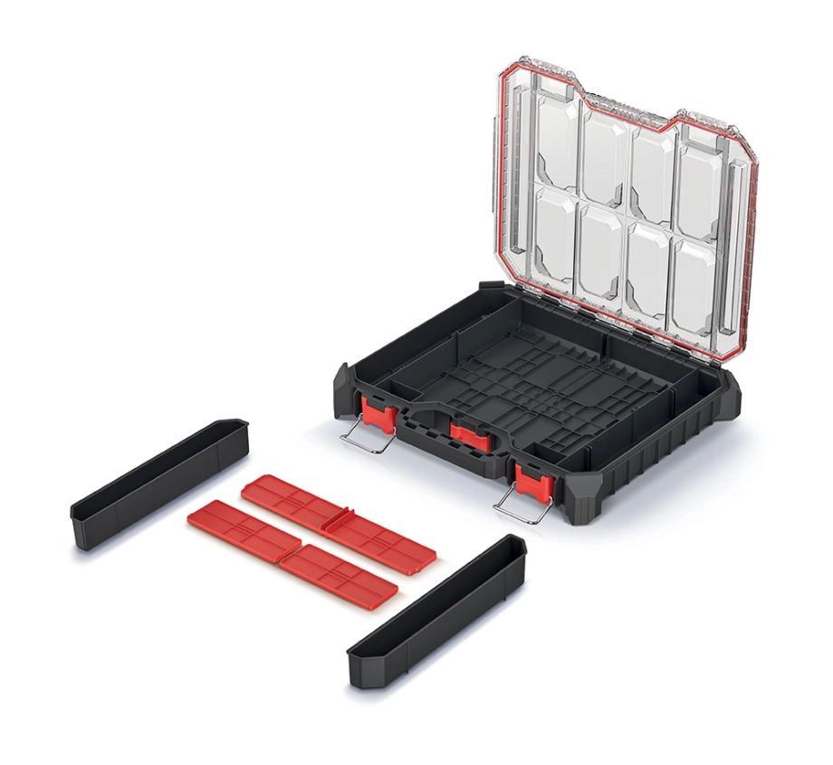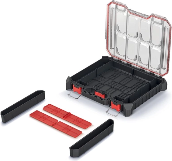 Păstrați-vă sculele și piesele mărunte perfect organizate. Acest organizator de culoare neagră combină dimensiuni compacte cu o construcție robustă, fiind ideal atât pentru atelier, cât și în deplasare. Capacul transparent din policarbonat oferă o vedere imediată asupra conținutului, în timp ce etanșarea de calitate îl protejează împotriva prafului și umezelii.