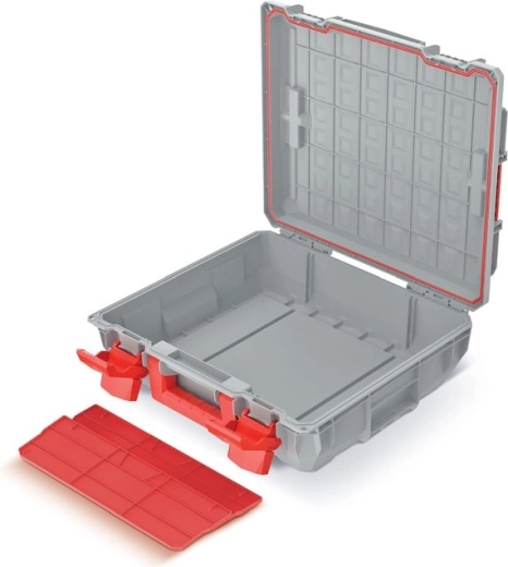 Geanta pentru scule C Block Pro asigură depozitarea fiabilă și organizată a uneltelor. Datorită dimensiunilor de 45 × 38 × 13,5 cm, găzduiește o gamă largă de scule și accesorii, în timp ce plasticul rezistent garantează greutate redusă și durabilitate îndelungată. Încuietorile solide protejează conținutul, iar mânerul ergonomic facilitează transportul.