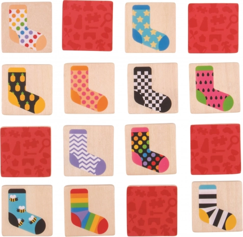 Îmbogățiți momentele de joacă cu copiii folosind pexeso din lemn cu șosete. Acest joc stimulează memoria și sprijină concentrarea și dezvoltarea abilităților strategice. Tot ce trebuie să faceți este să așezați cele 32 de piese de joc din lemn cu fața în jos și să începeți să descoperiți două piese simultan. Dificultatea crește treptat, jucătorul încercând să potrivească perechile de șosete și să dobândească noi strategii.