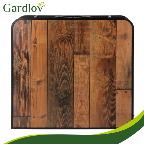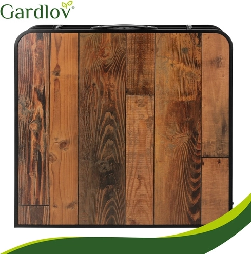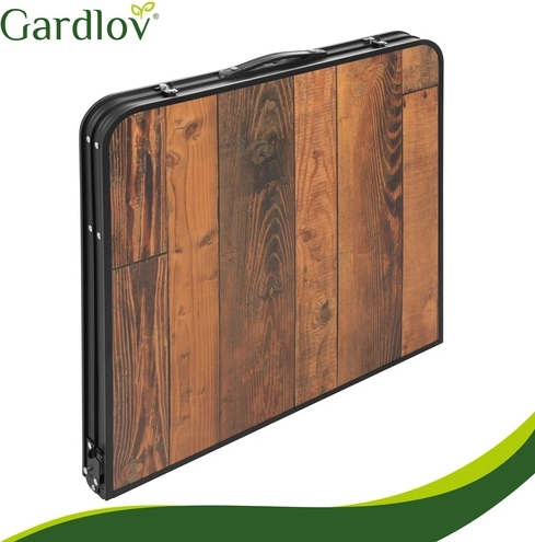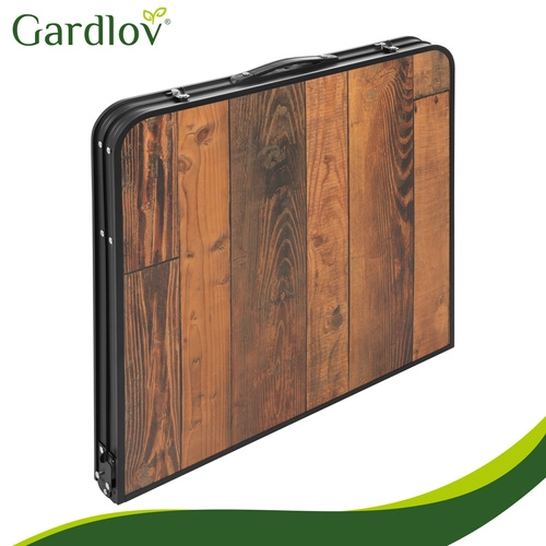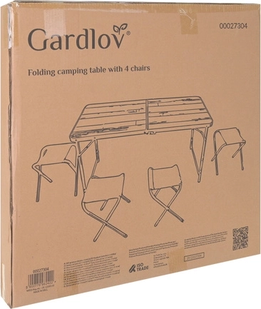 Bucurați-vă de picnicuri, camping și relaxare pe terasă fără pregătiri complicate. Această masă pliabilă GARDLOV cu patru taburete se montează în câteva clipe și se pliază la fel de repede într-un troller portabil. Decorul de lemn al blatului are un aspect elegant, iar construcția metalică rezistentă și mecanismele de blocare împotriva plierii accidentale mențin totul ferm pe poziție.