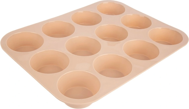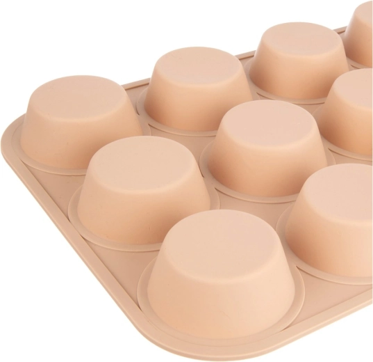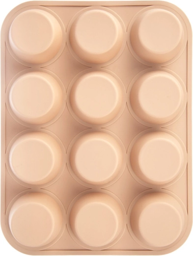 Această formă din silicon de calitate permite coacerea simultană a până la 12 brioșe sau cupcakes perfect formate. Materialul elastic asigură scoaterea ușoară fără lipire și fără a fi nevoie de ungere – aluatul nu se lipește de formă. Datorită dimensiunilor universale, se potrivește în majoritatea tăvilor și cuptoarelor și este excelentă și pentru deserturi care necesită răcire.
