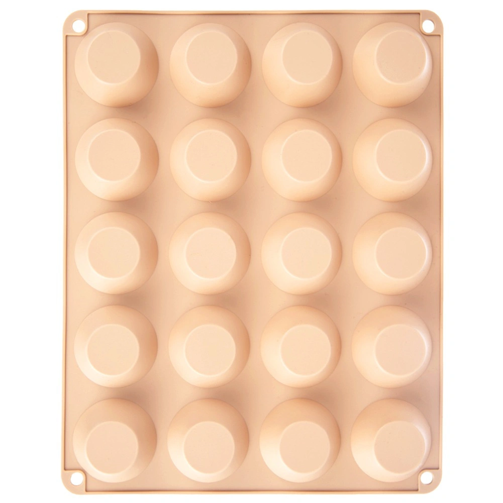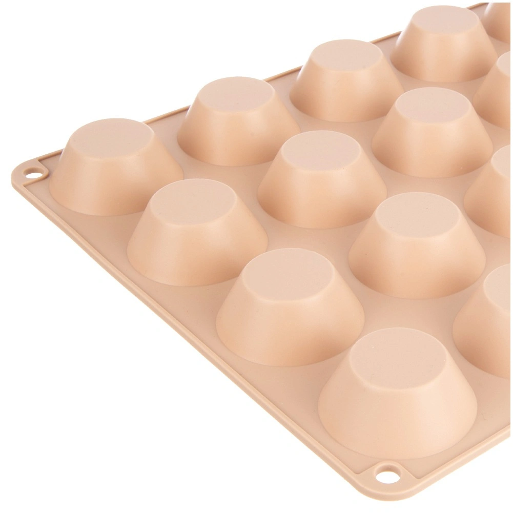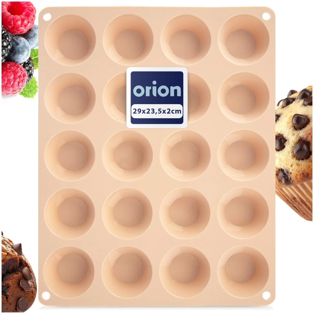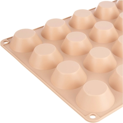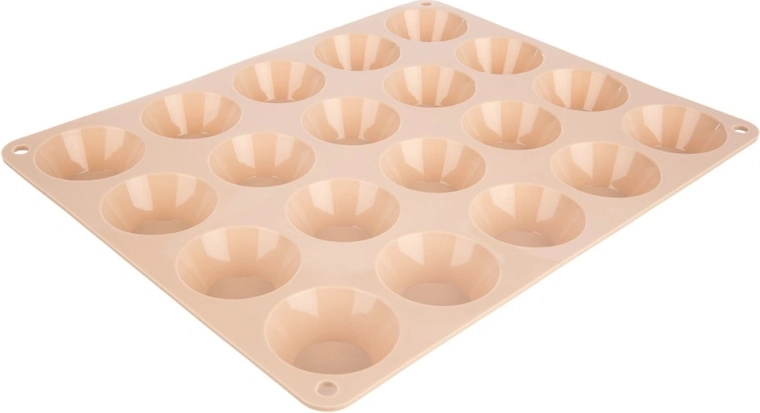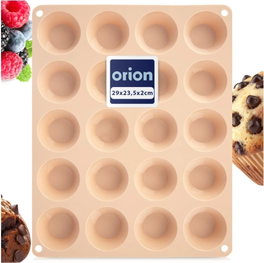 Această formă din silicon bej vă permite să pregătiți rapid și comod 20 de mini brioșe dintr-o singură tură. Siliconul de calitate, flexibil, asigură răsturnarea ușoară fără a folosi grăsime sau făină, grăbind astfel atât coacerea, cât și curățenia.
