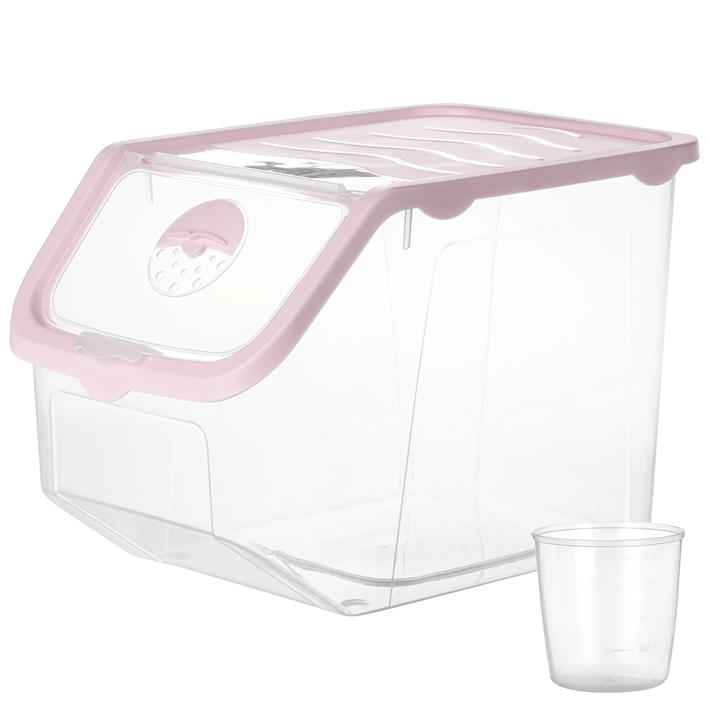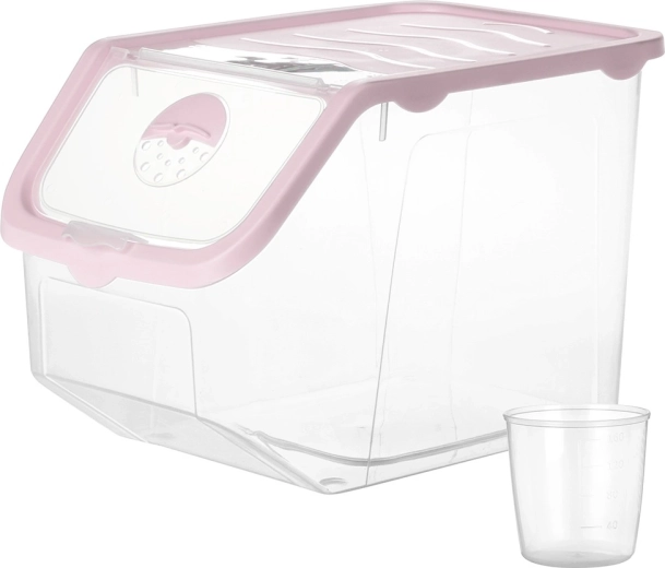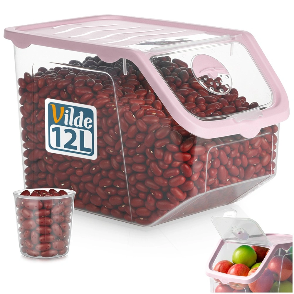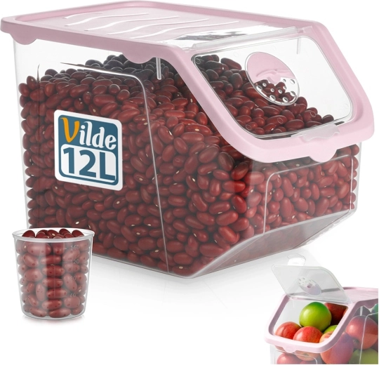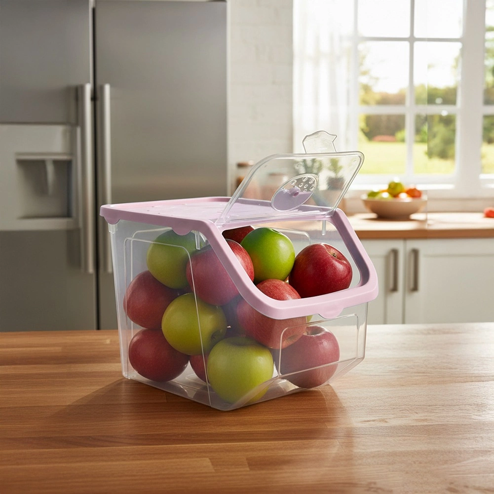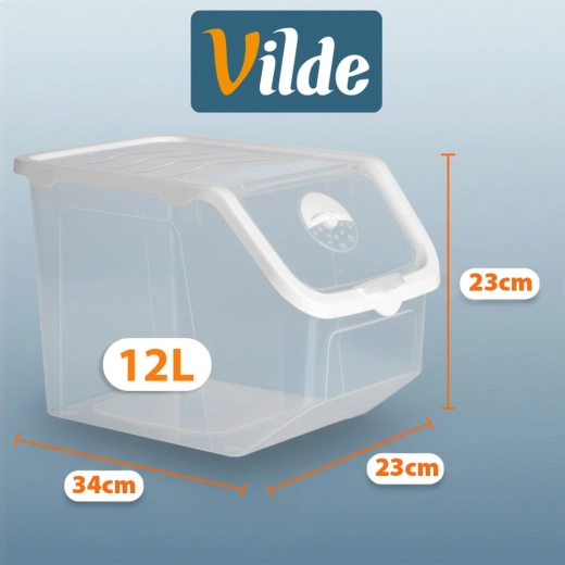 Recipient practic și igienic pentru organizarea cămării și a blatului din bucătărie. Datorită pereților transparenți aveți mereu o imagine clară a stocurilor, clapeta frontală rabatabilă permite dozarea comodă, iar capacul etanș protejează împotriva umidității și a mirosurilor. Ideal pentru fructe, legume (ceapă, cartofi, usturoi), hrană pentru animale, făină sau leguminoase.