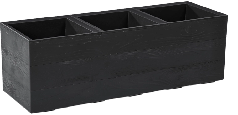 Ghiveciul Karo Recycled în culoarea neagră este alegerea ideală pentru terase, balcoane și interioare. Imitația fidelă a texturii lemnului oferă un aspect natural spațiului, în timp ce plasticul reciclat asigură rezistență și întreținere facilă. Construcția este concepută pentru utilizare îndelungată la soare și la îngheț.