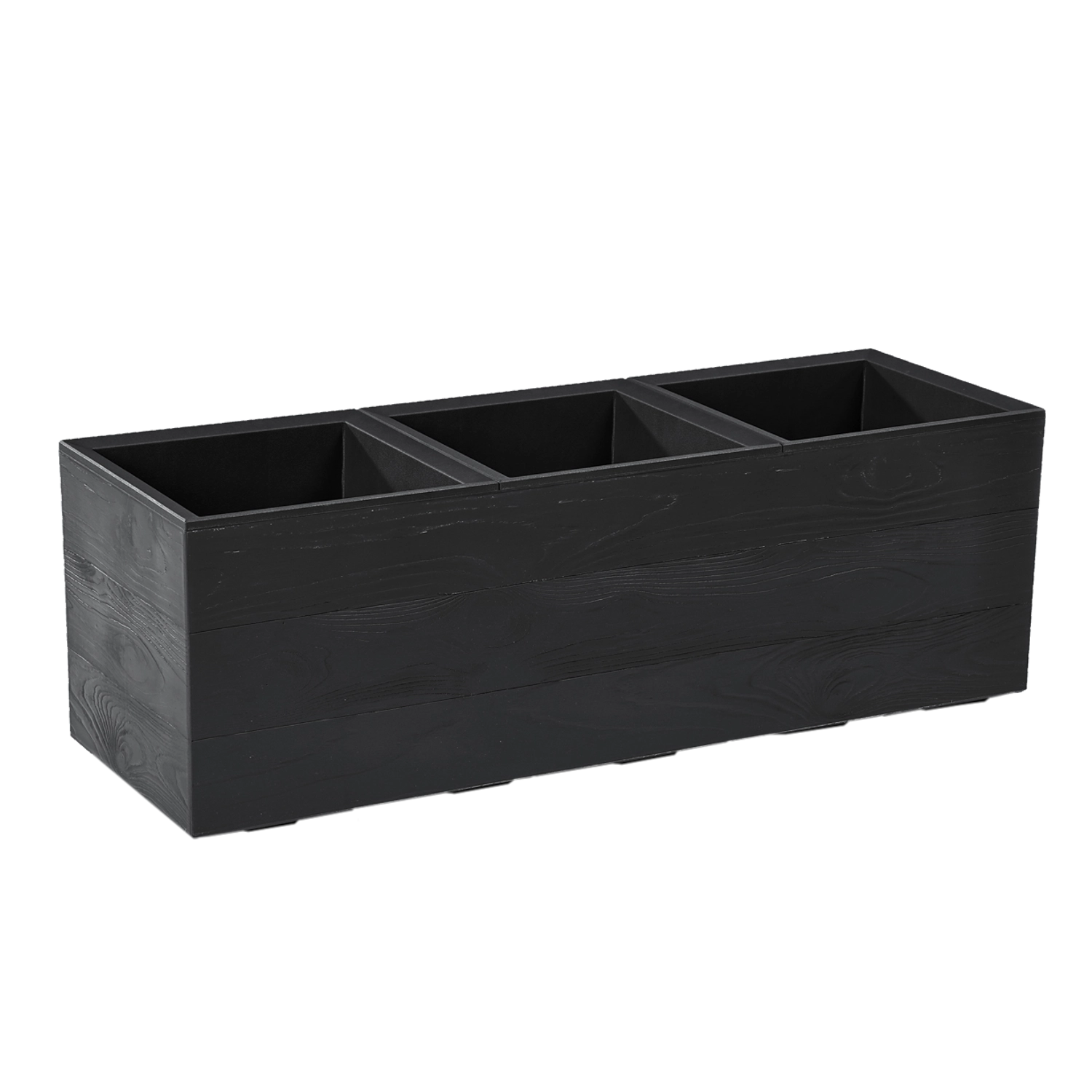 Ghiveci elegant din plastic reciclat, cu suprafață care imită lemnul, în dimensiunea 90 × 30 cm, aduce stil natural și durabilitate atât în interior, cât și în exterior. Datorită materialului reciclat este rezistent la UV și îngheț, are sistem de drenaj integrat cu dop și rotițe pentru mutare ușoară. O alegere excelentă pentru o gospodărie sustenabilă, fără compromisuri la design.