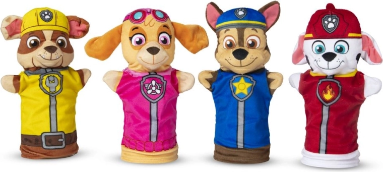 Adu lumea plină de acțiune a PATRULEI CĂȚEILOR în camera copilului. Cele patru marionete realizate cu detalii – Chase (polițist), Marshall (pompier), Skye (pilot) și Rubble (constructor) – sunt fabricate din material moale, plăcut la atingere și, datorită mărimii universale, se potrivesc confortabil atât pe mâna copilului, cât și pe o mână adultă mai mică.
