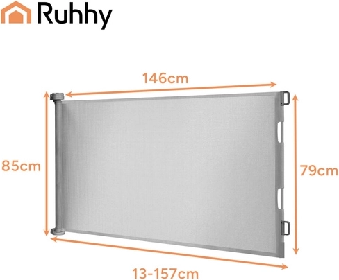 Practică și ușor de folosit, poarta cu rolă RUHHY oferă extindere lină până la 157 cm, astfel încât o poți adapta cu ușurință atât deschiderilor înguste, cât și celor late. Soluția fără prag elimină riscul împiedicării, iar după strângere ocupa un spațiu minim. Datorită combinației dintre roleta din PVC, tuburile din aluminiu și componentele din plastic robust, poarta este stabilă și rezistentă pentru utilizarea zilnică.