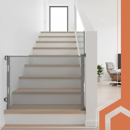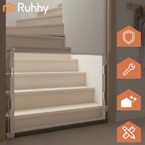 Montajul este universal – potrivit pentru scări, uși, balcoane și între încăperi. Mecanismele de blocare sigure și fixarea inferioară îngreunează ridicarea sau strecurarea pe dedesubt. Suprafața netedă se întreține ușor – este suficient să o ștergi cu o cârpă umedă.