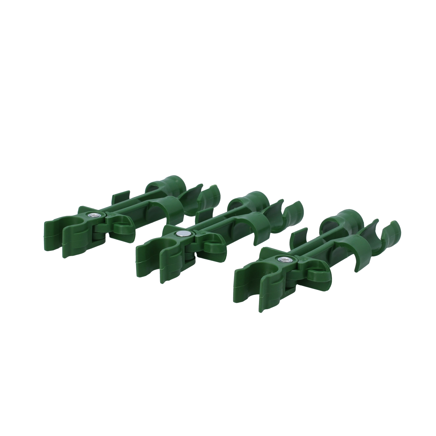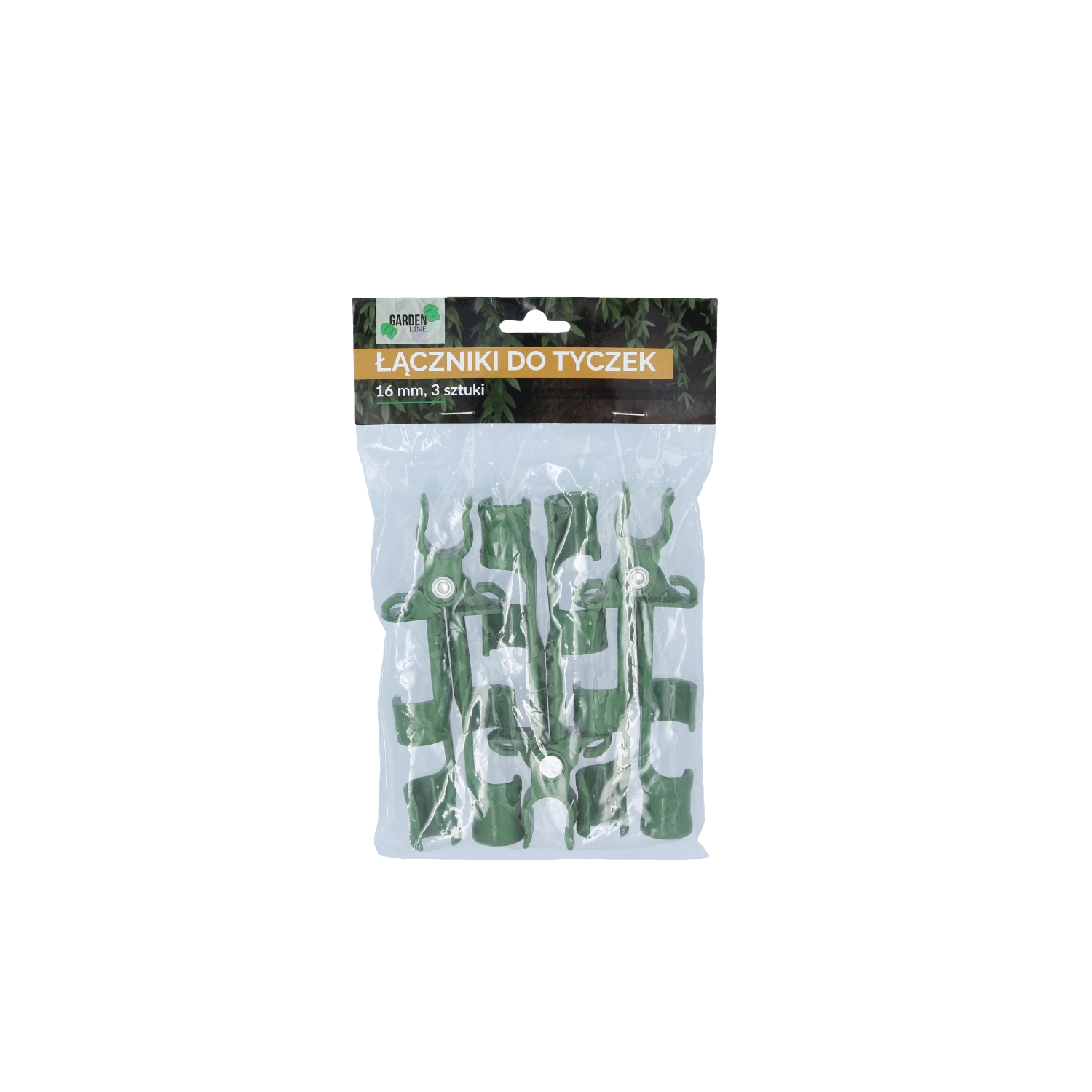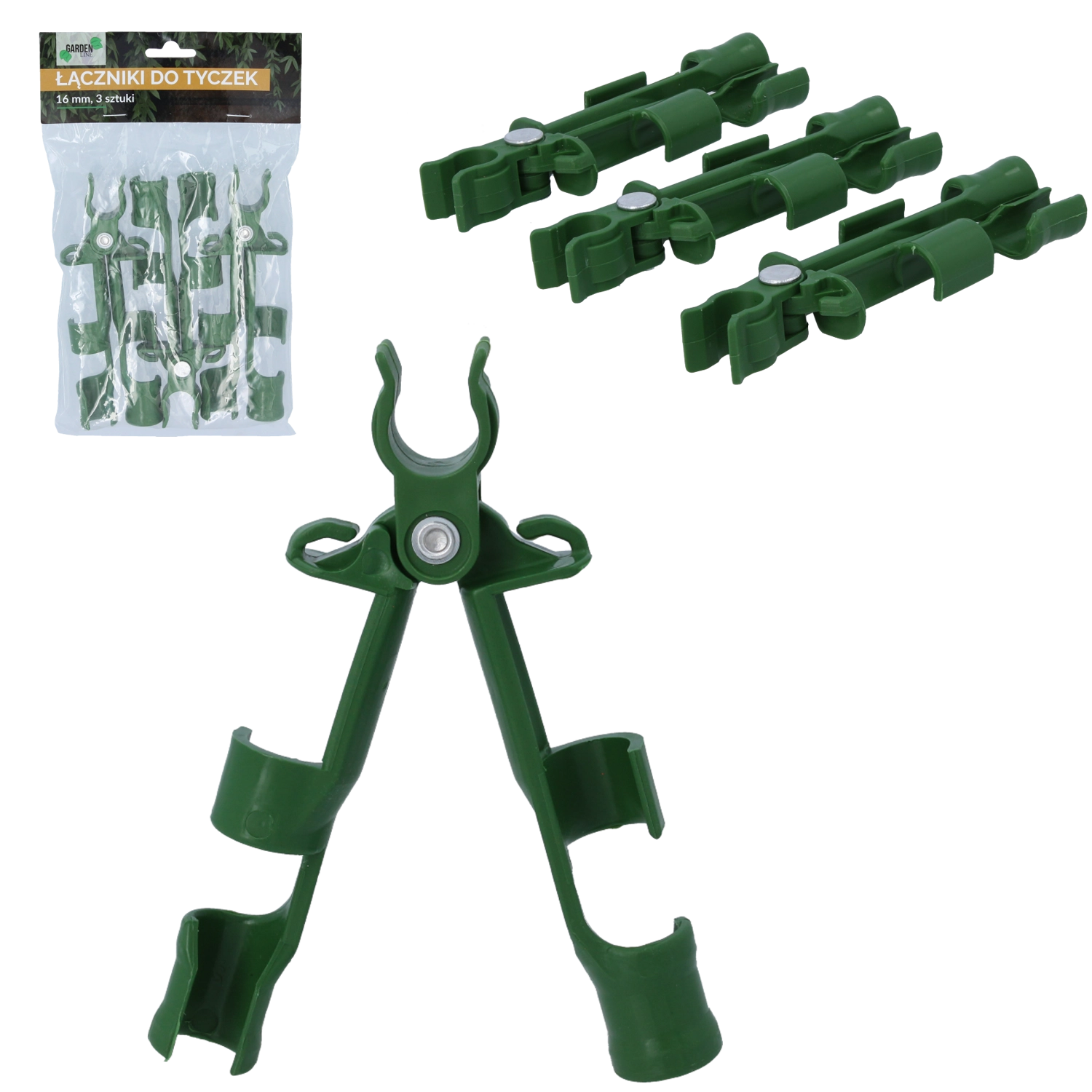 Set practic de trei conectori de grădină pentru bețe de sprijin cu diametrul de 16 mm, care asigură îmbinare solidă și sprijin stabil pentru plante. Materialul din plastic este ușor, rezistent la intemperii și permite instalare ușoară fără unelte pentru asamblarea rapidă a grilelor, cadrelor și suporturilor.