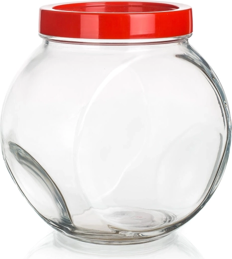 Borcanul practic din sticlă WALLIBUCK cu volum de 1,5 l, cu capac înșurubabil etanș de culoare roșie, este ideal pentru depozitarea alimentelor. Sticla transparentă permite verificarea instantanee a conținutului, iar forma borcanului facilitează prinderea confortabilă și poziționarea ușoară.