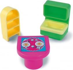 Setul include accesorii bogate și un planșeu cu autocolante pentru a finisa interiorul. Copiii pot personaliza căsuța cu ușurință după bunul plac.