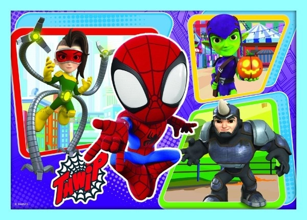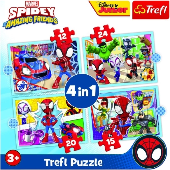 Set pentru copii cu 4 puzzle-uri în 1 cu tematica MARVEL Spidey and His Amazing Friends aduce distracție și învățare pentru copiii de la 3 ani. Nivelurile diferite de dificultate (12, 15, 20 și 24 de piese) susțin dezvoltarea motricității, gândirii logice și răbdării. Realizarea de calitate și materialele ecologice asigură o joacă sigură și de durată.