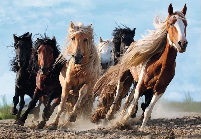 Bucurați-vă de un puzzle care, odată asamblat, surprinde o scenă uimitoare a cailor în galop. Dimensiunile imaginii finale sunt de 68 x 48 cm, oferind dimensiunea ideală pentru a afișa detaliile acestei scene dinamice.