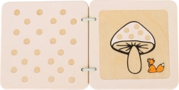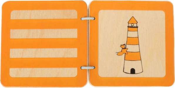 Cărticica senzorială din lemn cu vulpișorul Lex le oferă copiilor o primă întâlnire cu forme simple, decupaje și ilustrații care le stimulează curiozitatea și imaginația. Construcția robustă, marginile netede și inelele metalice asigură o răsfoire sigură și confortabilă chiar și pentru cele mai mici mânuțe.