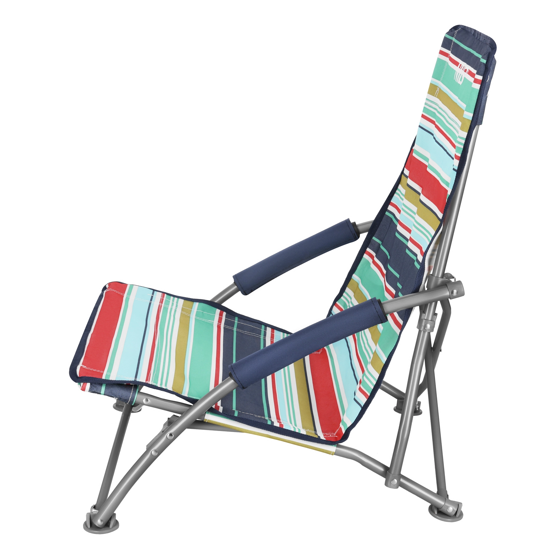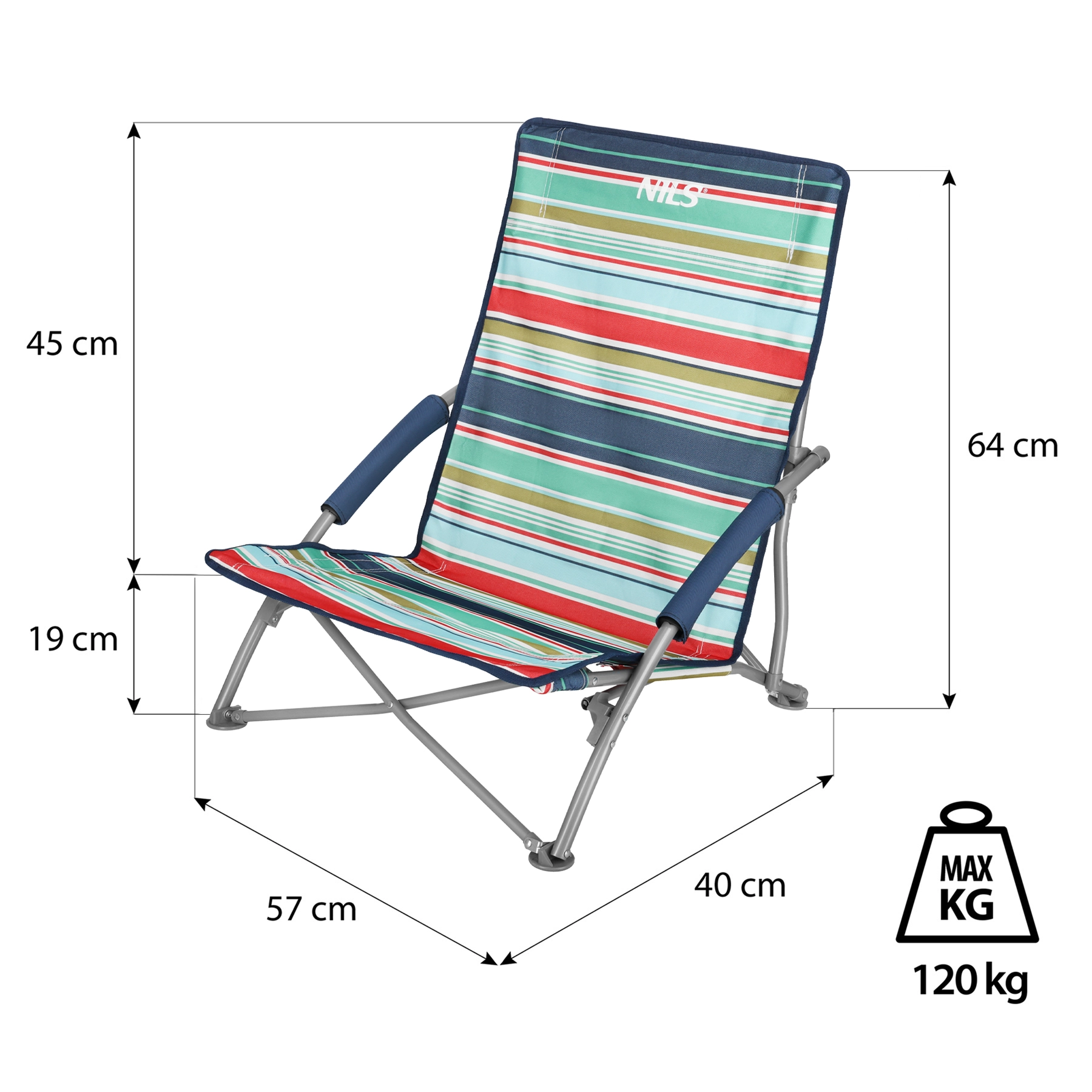 Pentru confort maxim, scaunul are cotiere din spumă și șezut jos, ideal pentru plajă. Picioarele circulare din plastic sporesc stabilitatea, previn alunecarea și nu se afundă pe suprafețe moi, precum nisipul. După pliere, scaunul încape în husa de transport inclusă, lucru util la călătorii și depozitare.