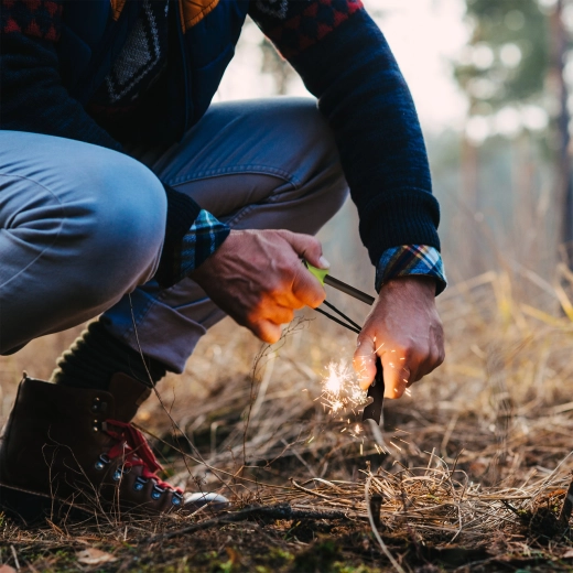 Tija din ferroceriu generează scântei intense care aprind cu ușurință amorsa chiar și în condiții dificile. Pornire fiabilă a focului pe vânt și umezeală.