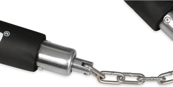 Prinderea pe rulmenți a rolelor din oțel în combinație cu lanțul sudat oferă o funcționare lină și o durată lungă de viață chiar și în utilizare intensă. Dimensiunile echilibrate și greutatea redusă de 280 g facilitează manevrarea, tranzițiile rapide și execuția precisă a loviturilor sau blocajelor.
