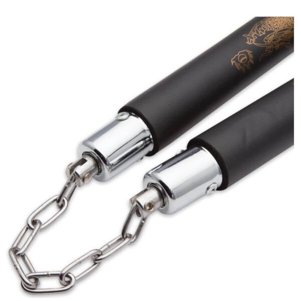 Nunchakurile de antrenament DBX Bushido cu mânere moi din spumă sunt ideale pentru exersarea mai sigură a tehnicilor artelor marțiale. Stratul gros de spumă minimizează riscul de accidentare, în timp ce rolele din oțel cu rulmenți și lanțul sudat asigură o mișcare lină, durabilă și fiabilă.