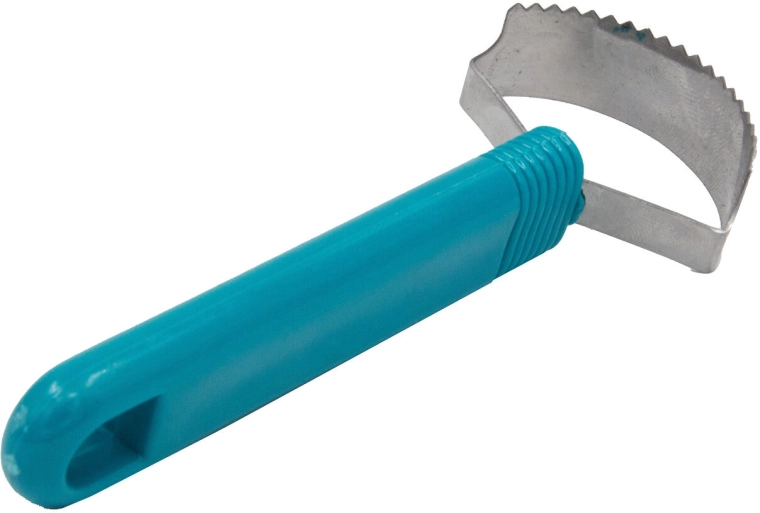 Capul metalic zimțat prinde și răzuie ușor atât solzii mici, cât și pe cei mari, fără a deteriora pielea peștelui.