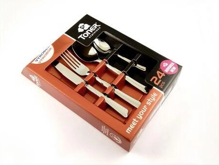 - 6× lingură pentru supă, 6× furculiță, 6× cuțit, 6× linguriță pentru cafea