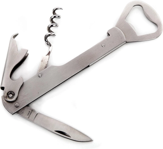 - Deschizător de chelner (tirbușon și deschizător pentru capace tip coroană)