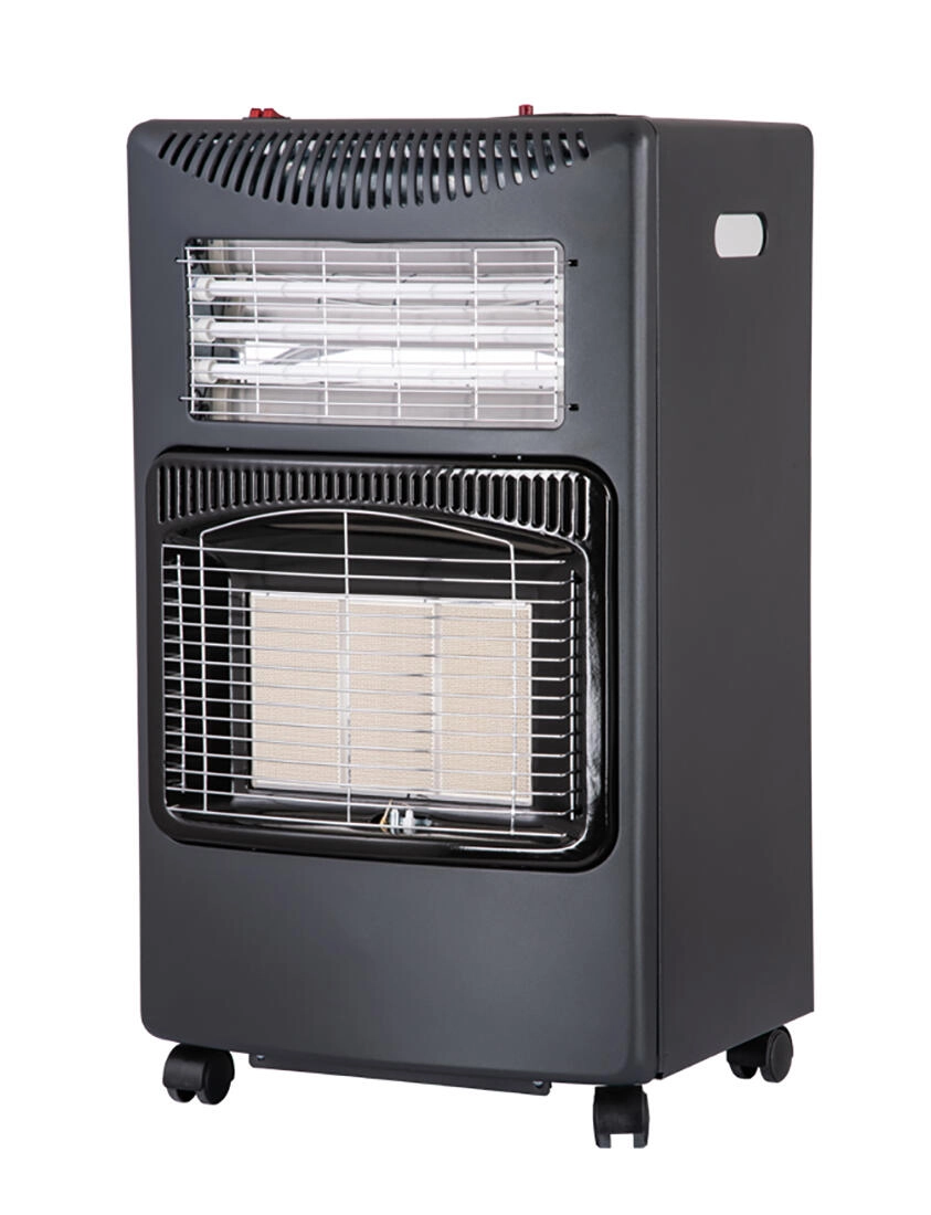 Comutați între propan‑butan și încălzirea electrică de 1200 W în funcție de disponibilitatea sursei și puterea dorită. Soluție ideală pentru locuințe, cabane și ateliere.
