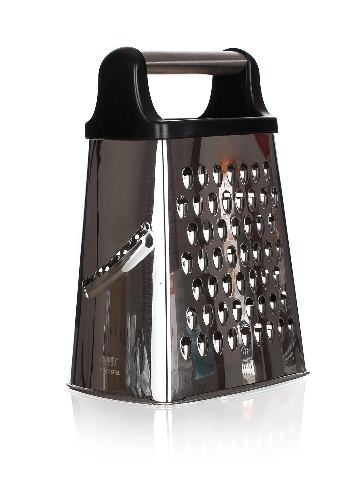 Forma stabilă de tip A asigură o așezare fermă pe blatul de lucru, în timp ce suprafața netedă din inox se curăță rapid și ușor. Răzătoarea este ideală pentru brânză, legume, fructe și ciocolată – o alegere excelentă pentru orice bucătărie de acasă.